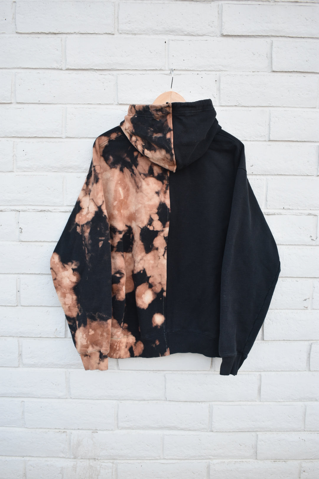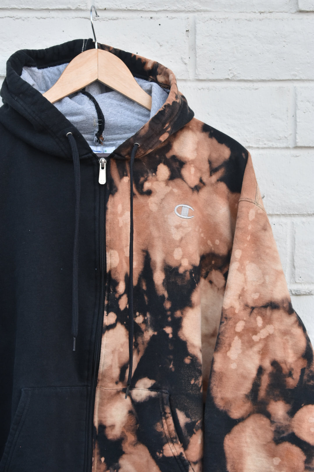 Black Split Reverse Dyed Reworked Zip Up Hoodie
