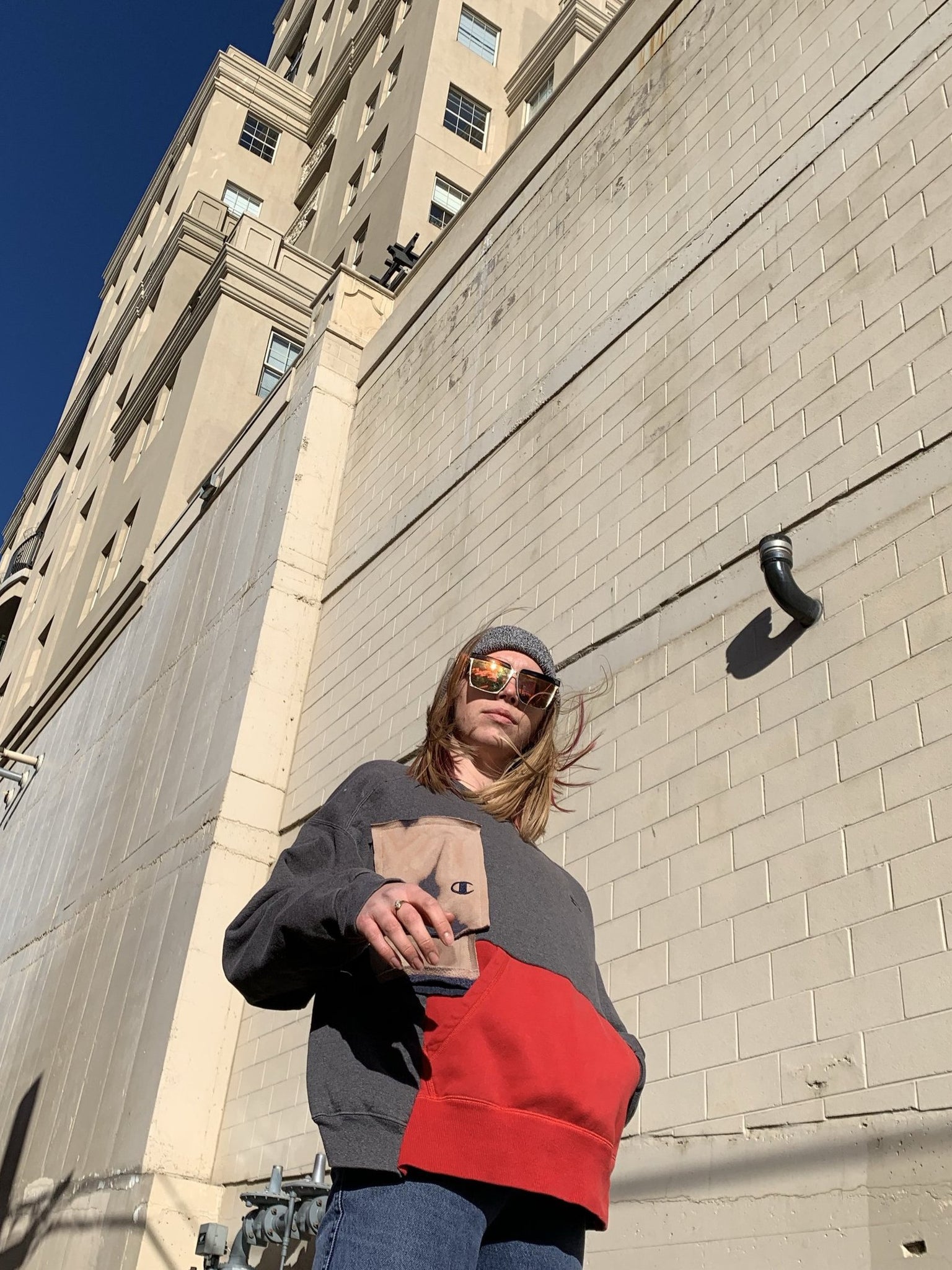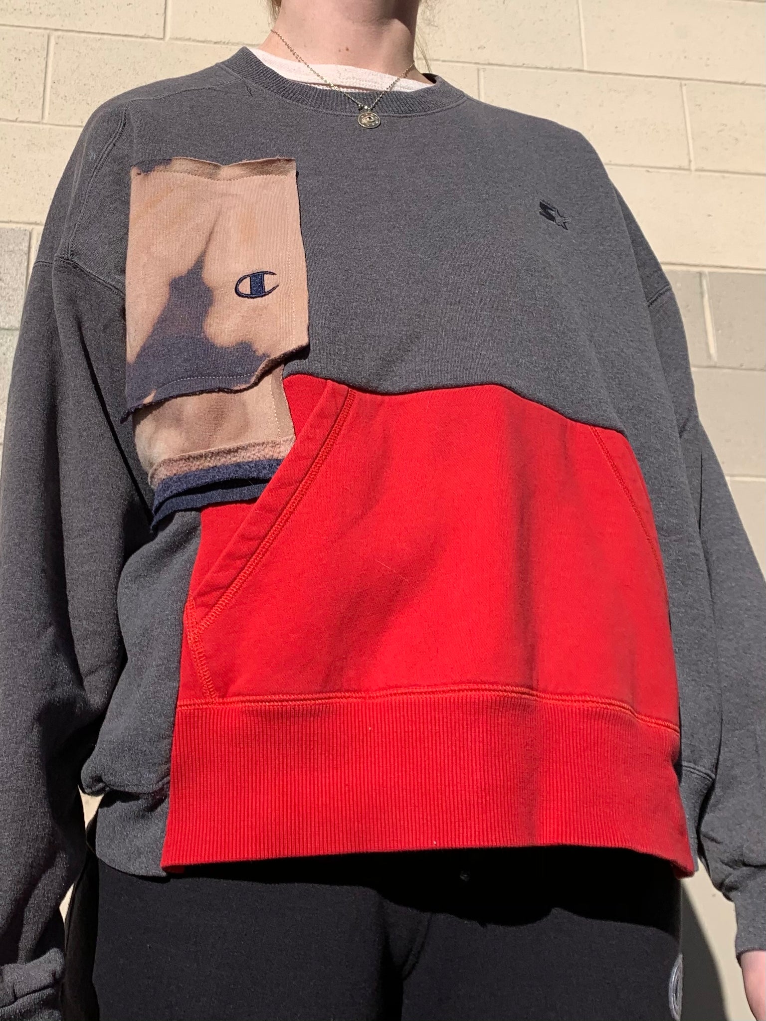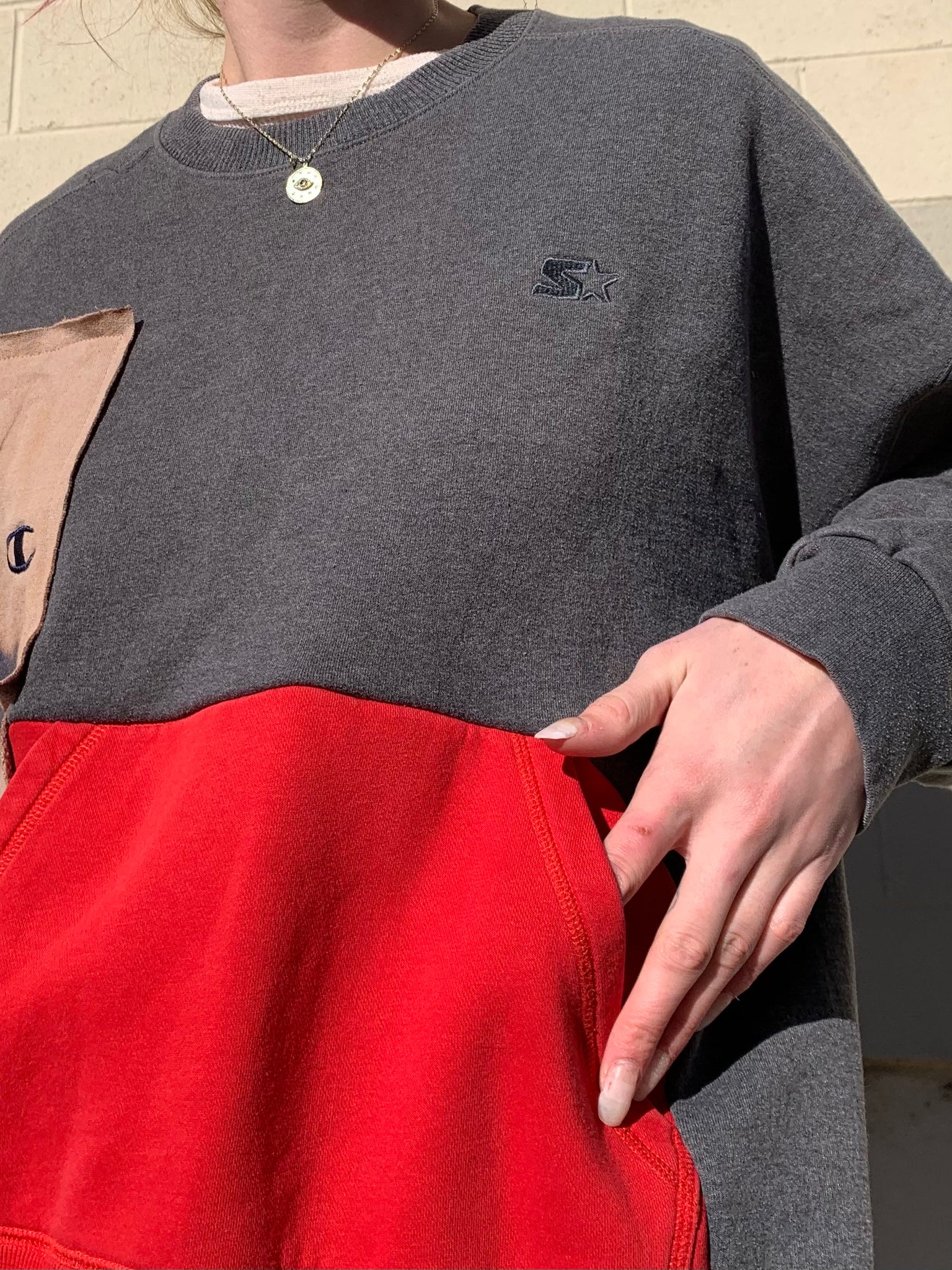 Unisex xlarge Grey and Red Pullover with Front Pocket