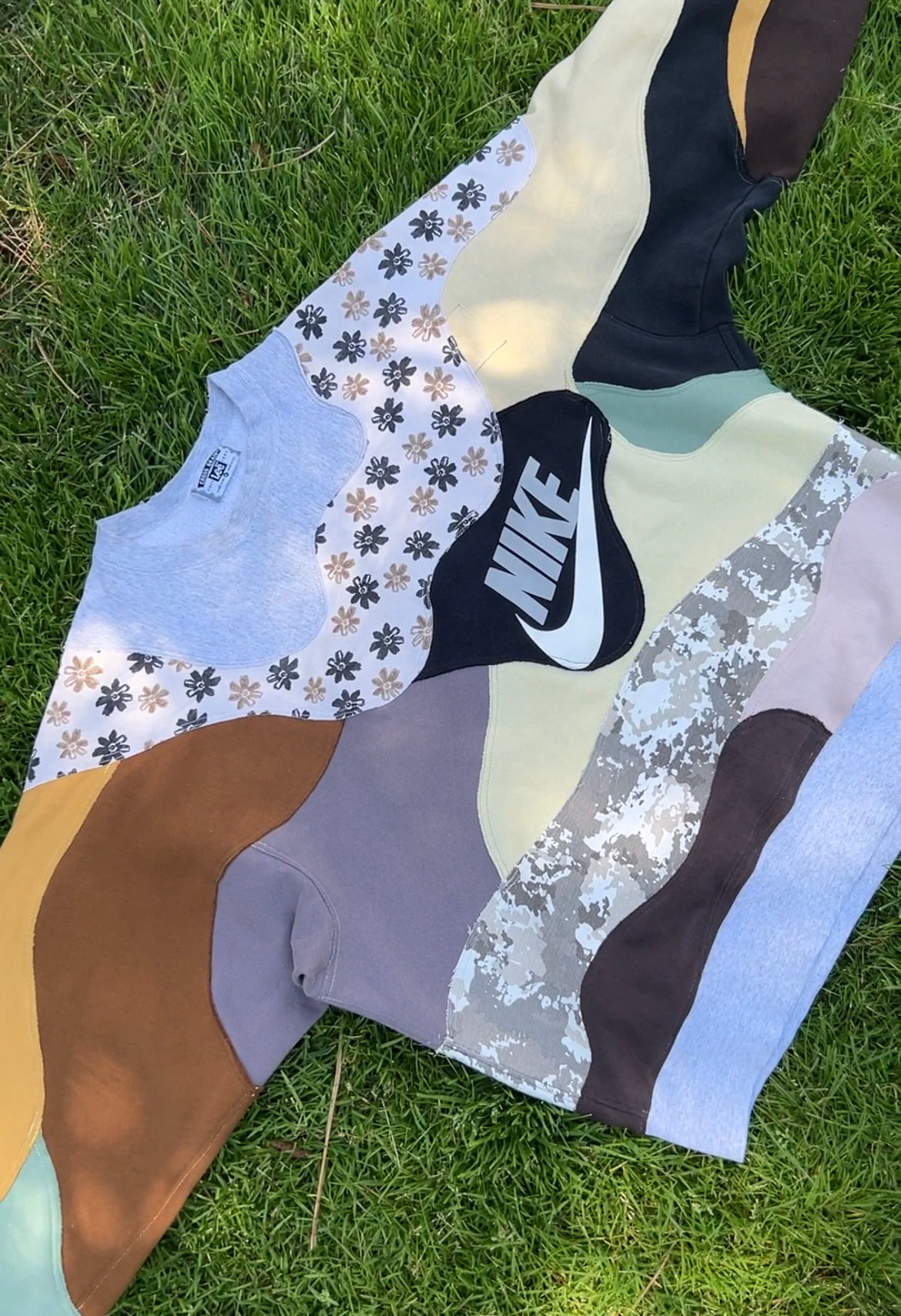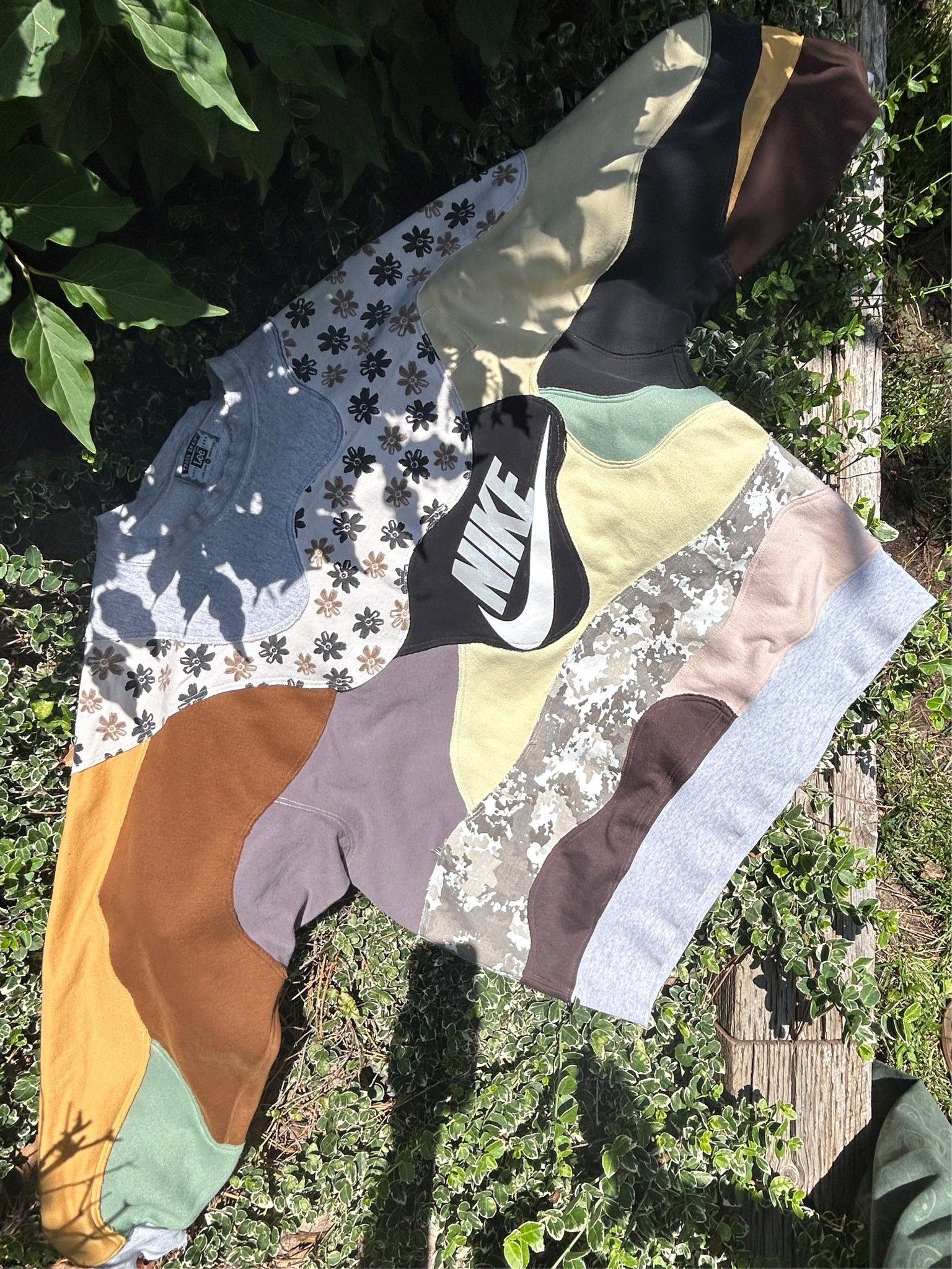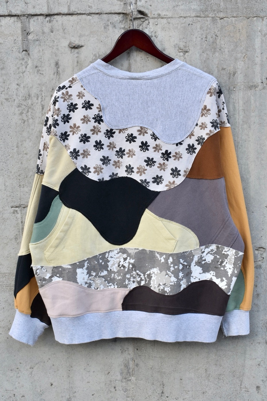 Brown Grey Yellow Black and Patterned Reworked Pullover