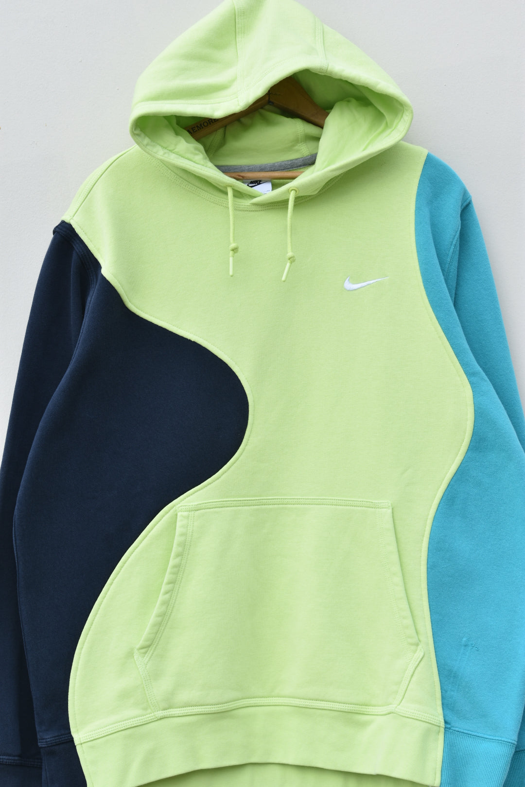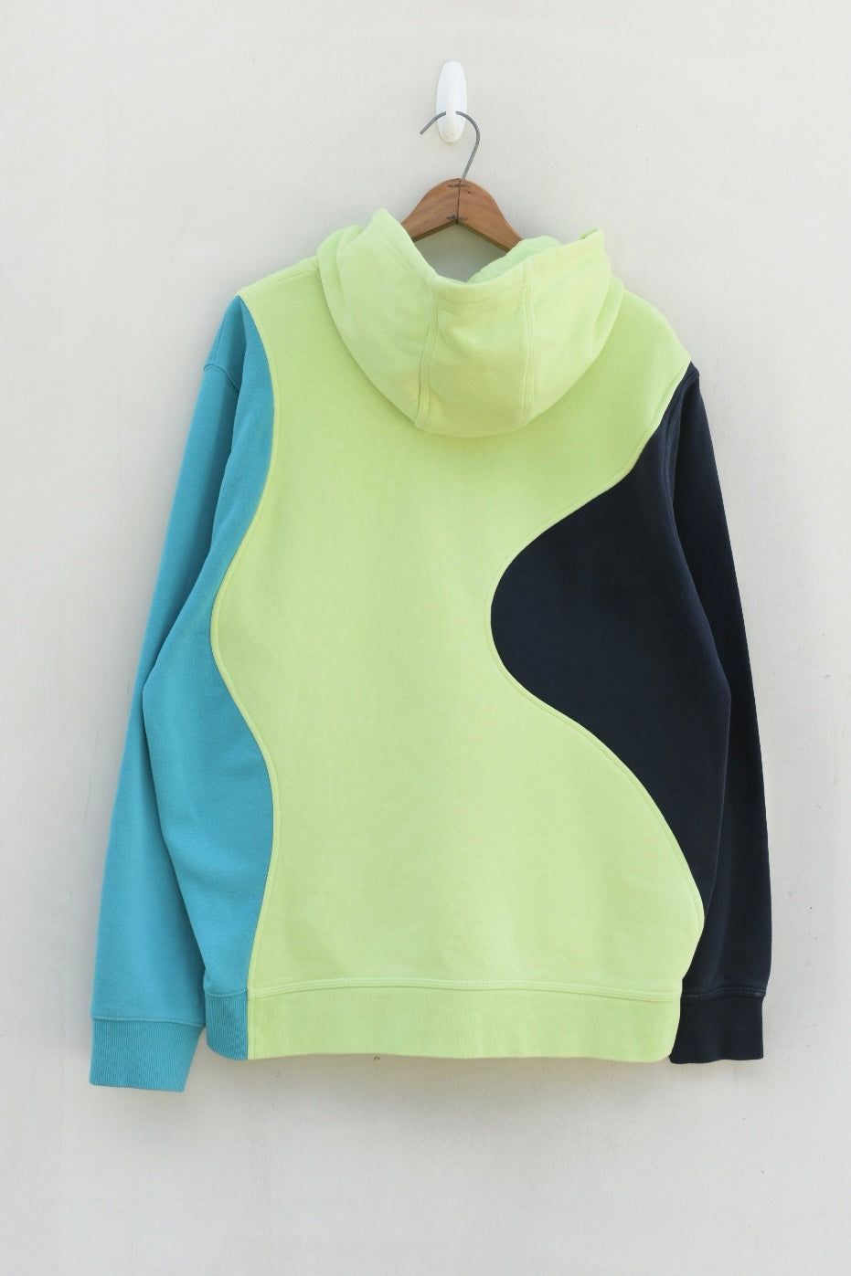 Navy blue, neon yellow and bright blue reworked hoodie