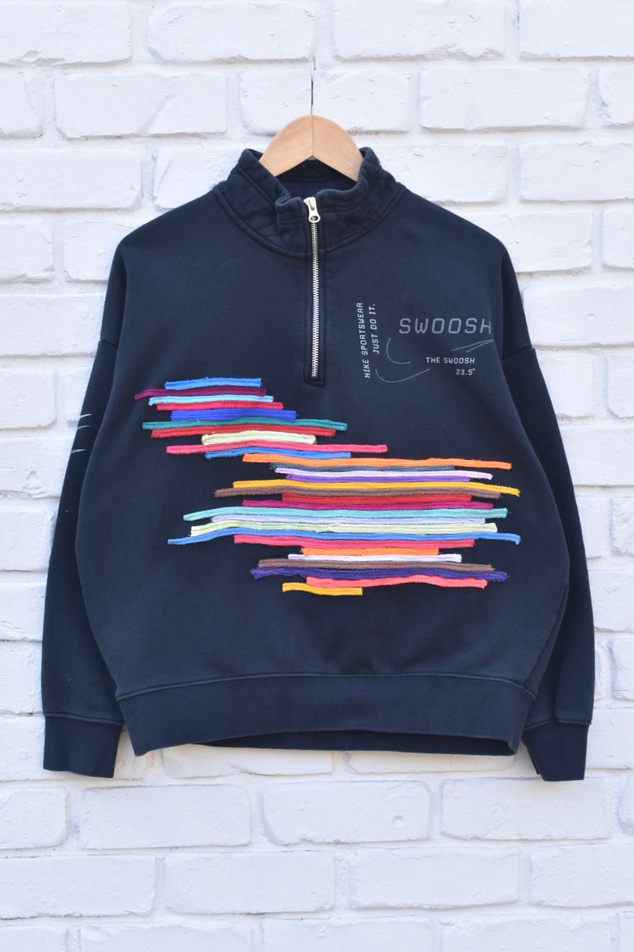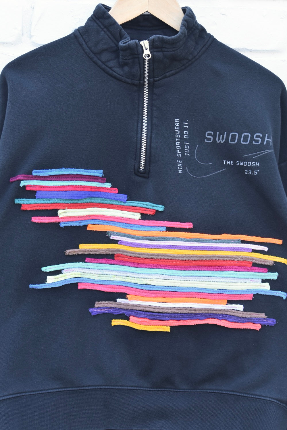 Black and Colorful Reworked Shortened Quarter Zip Sweatshirt