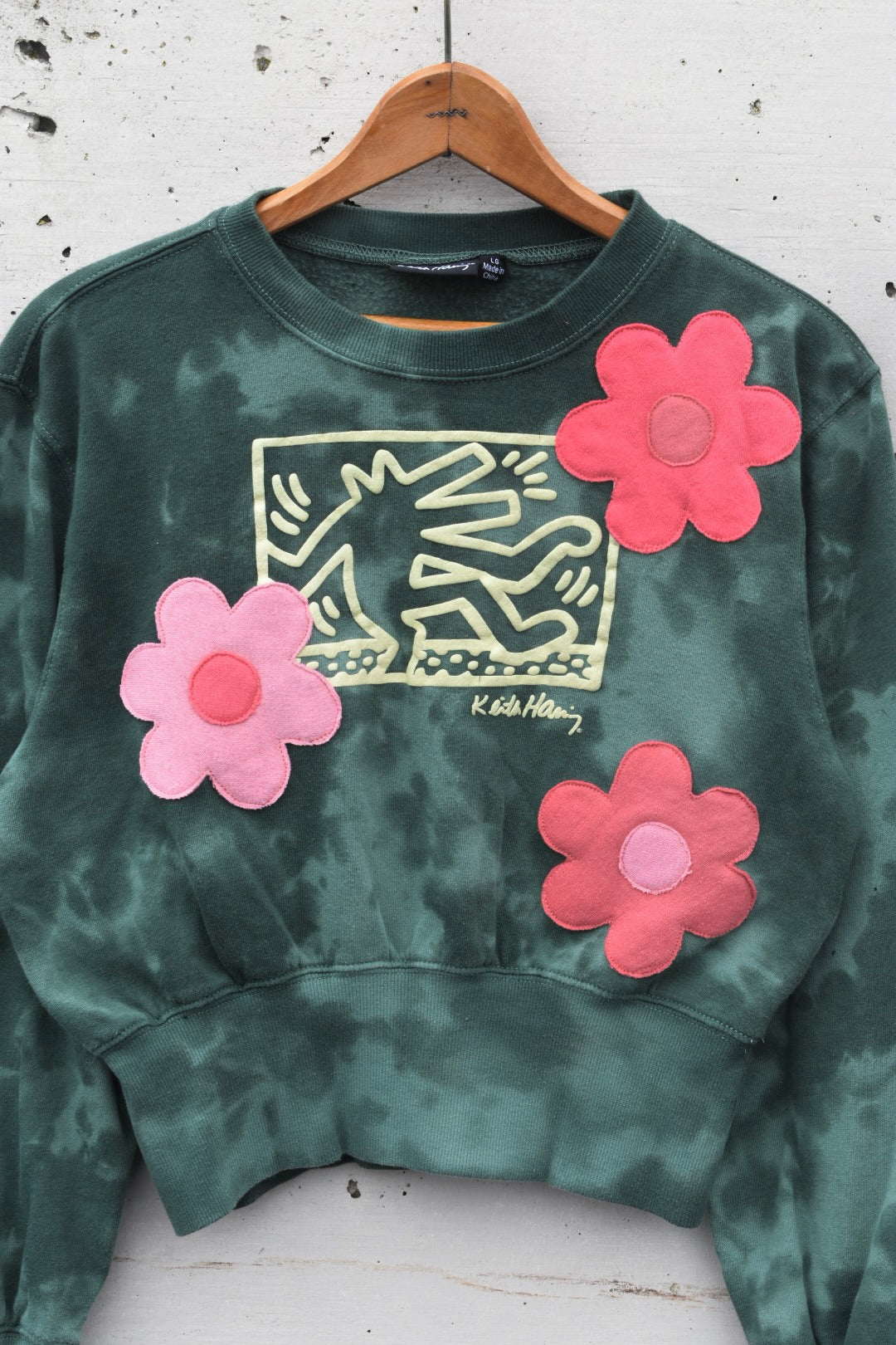 Green and Pink Reworked Cropped Sweatshirt