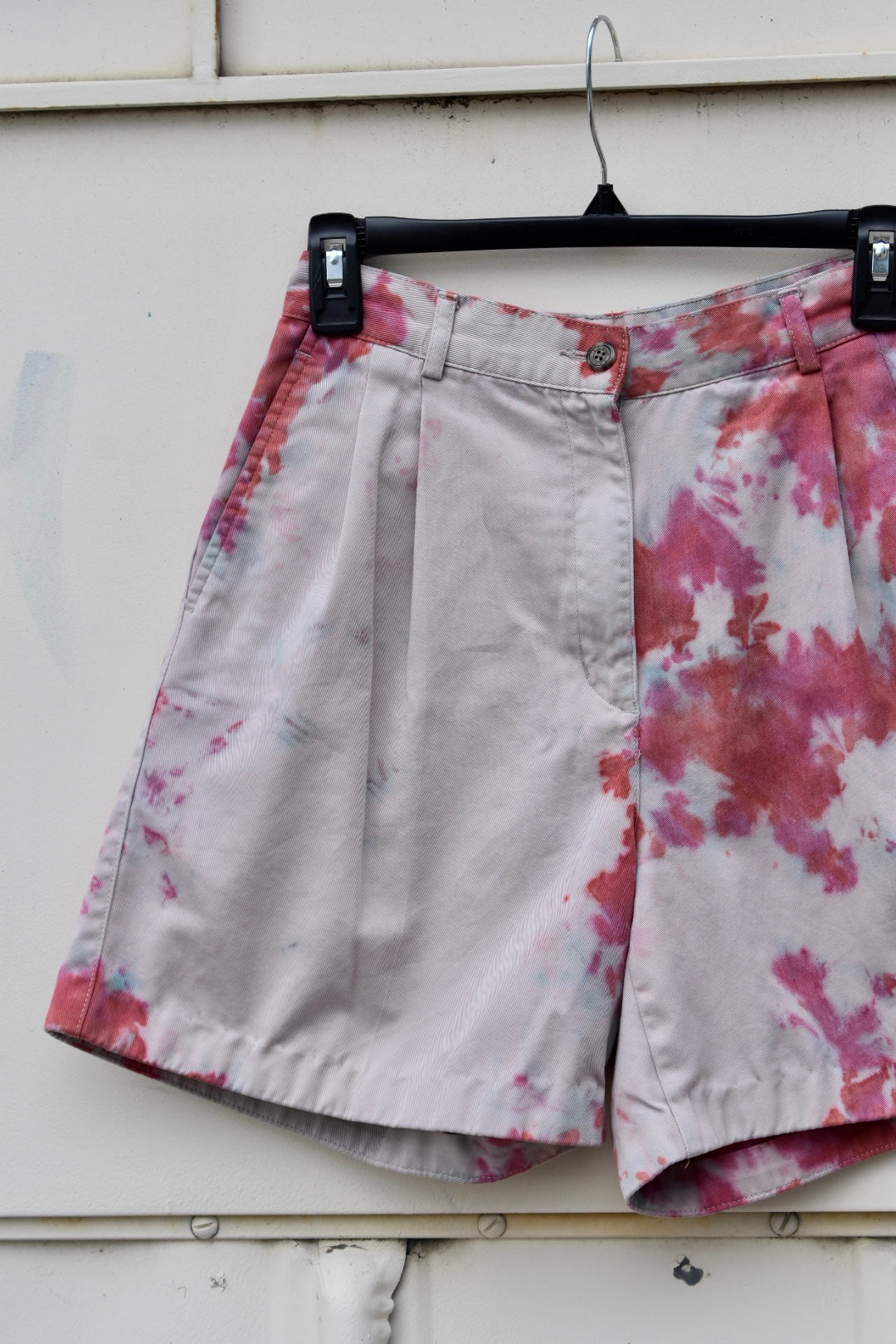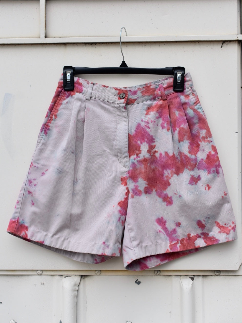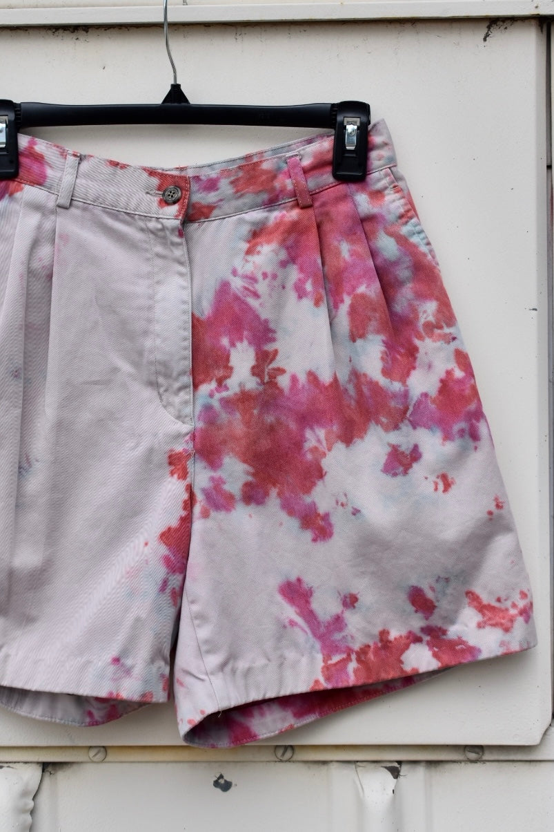Beige and Blue, Pink and Orange Dyed Cotton High Rise Shorts