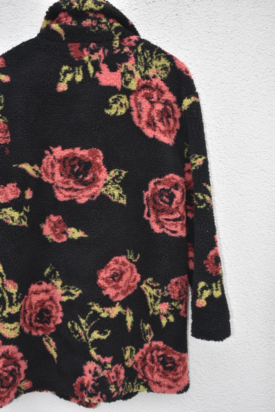 Women’s small Mid Length Black and Floral Teddy Jacket