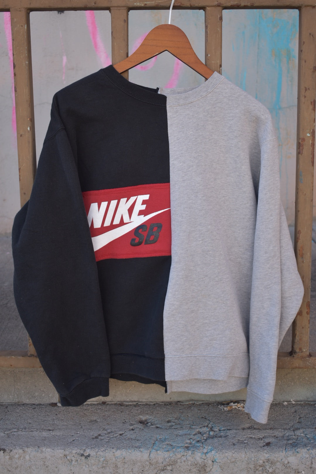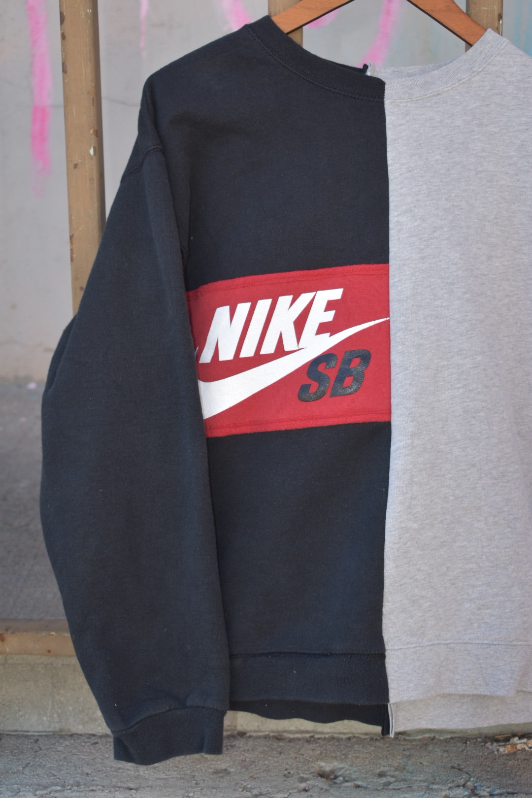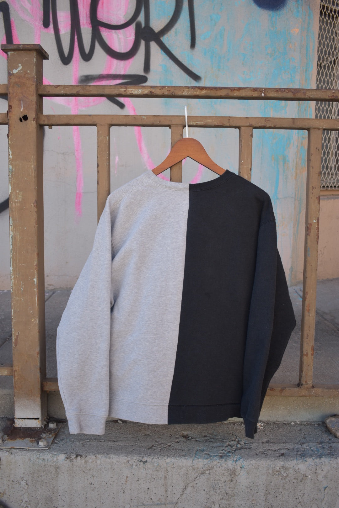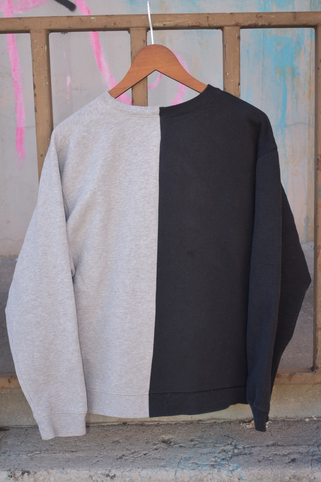 Unisex medium Grey and Black Sweatshirt Pullover with Red Patch