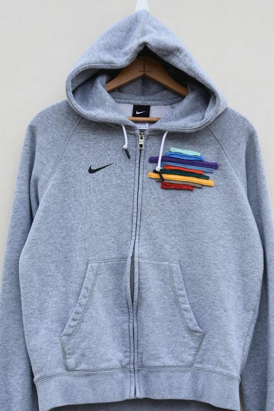 Grey and colorful reworked zip up hoodie