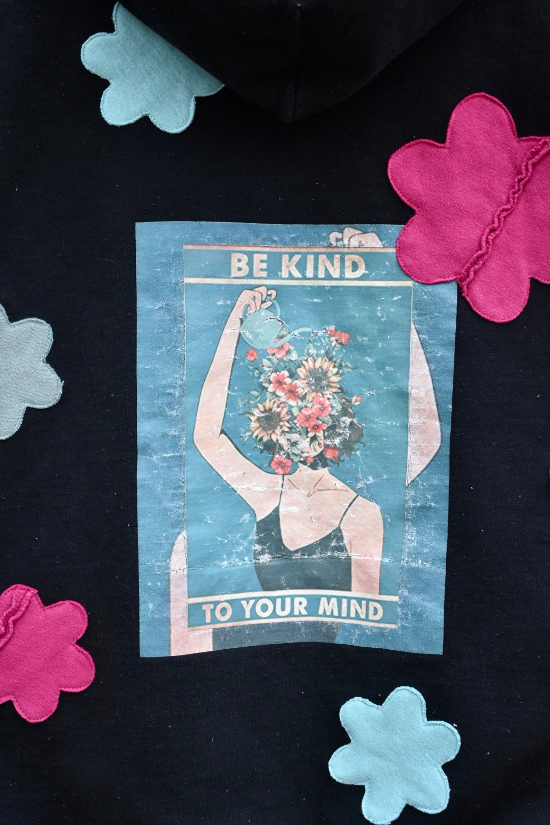 Black, Blue, Pink and Mint Green Reworked Hoodie