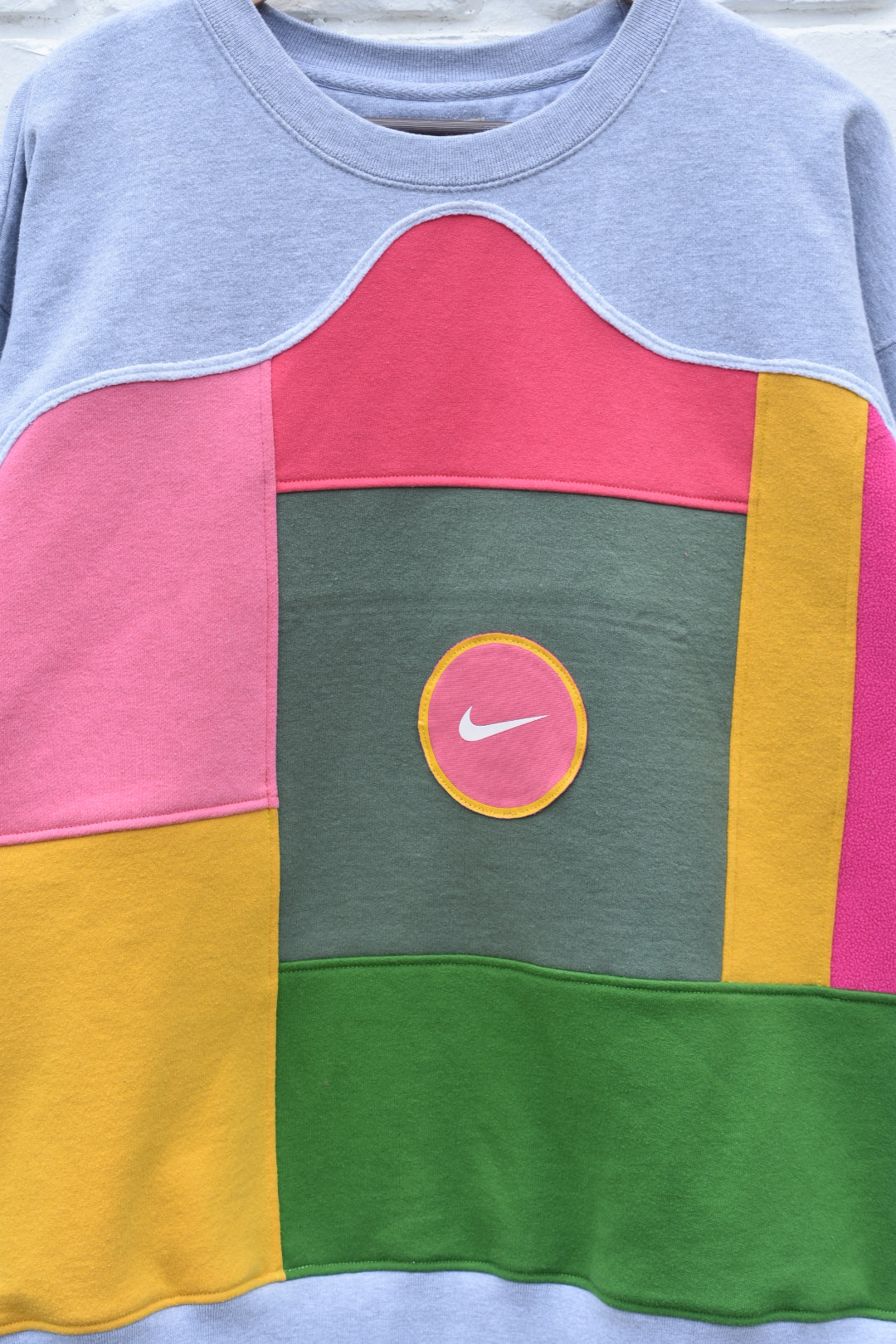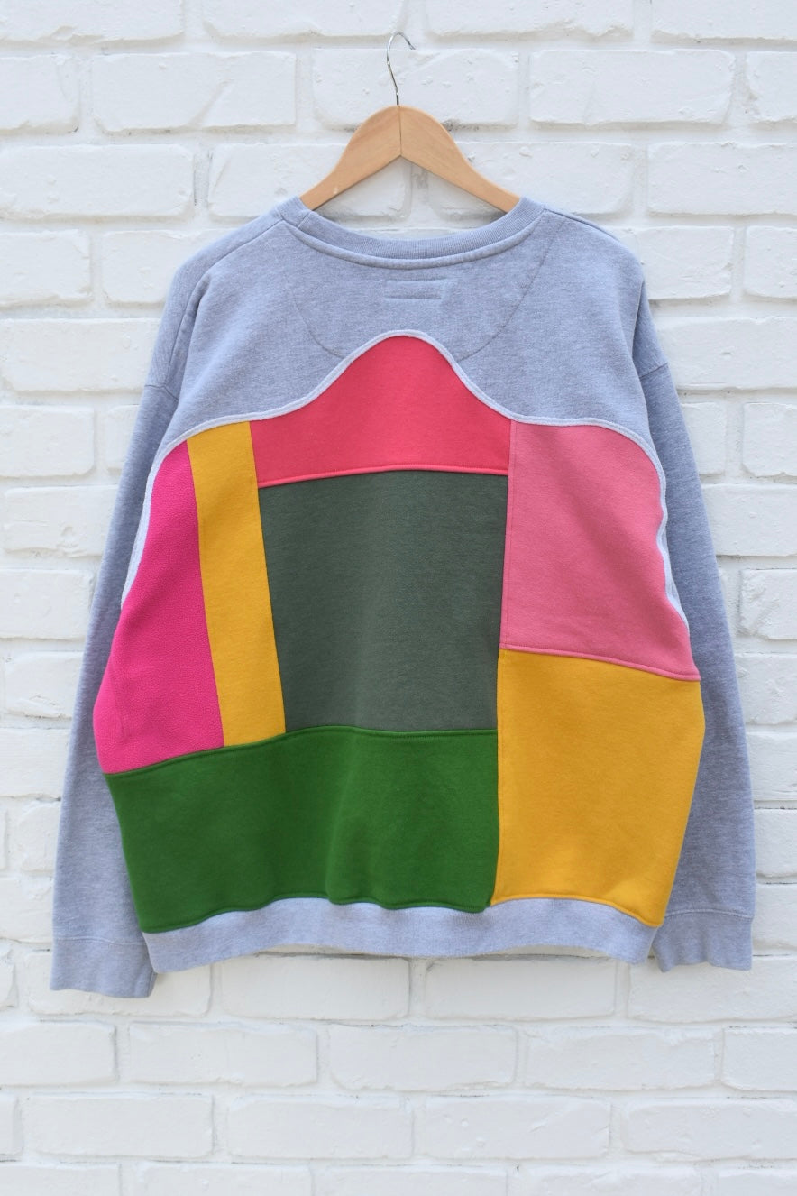 Grey Green Pink and Yellow Reworked Sweatshirt