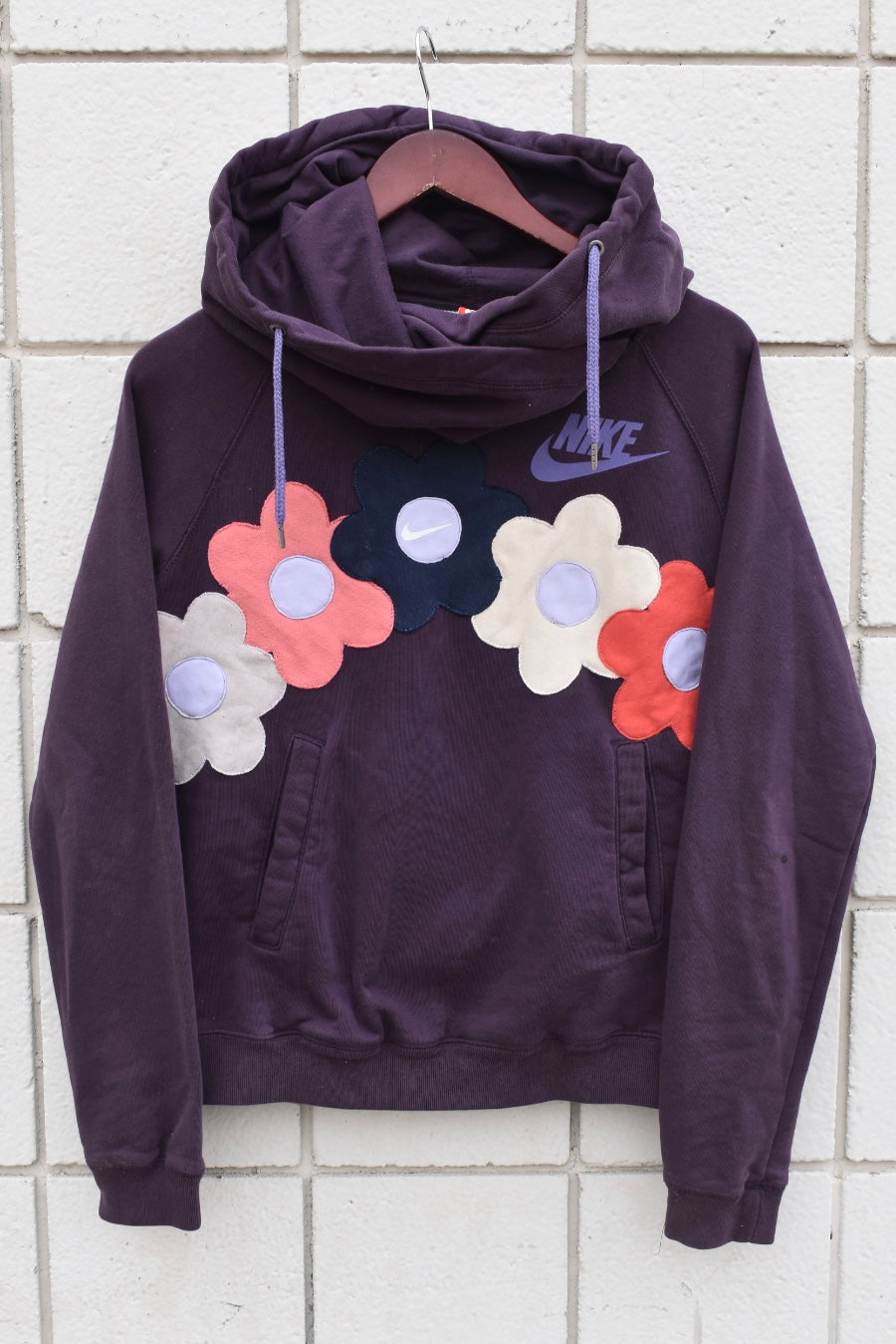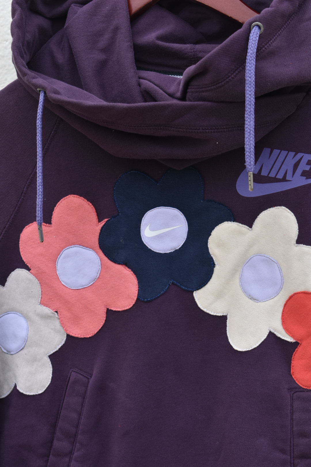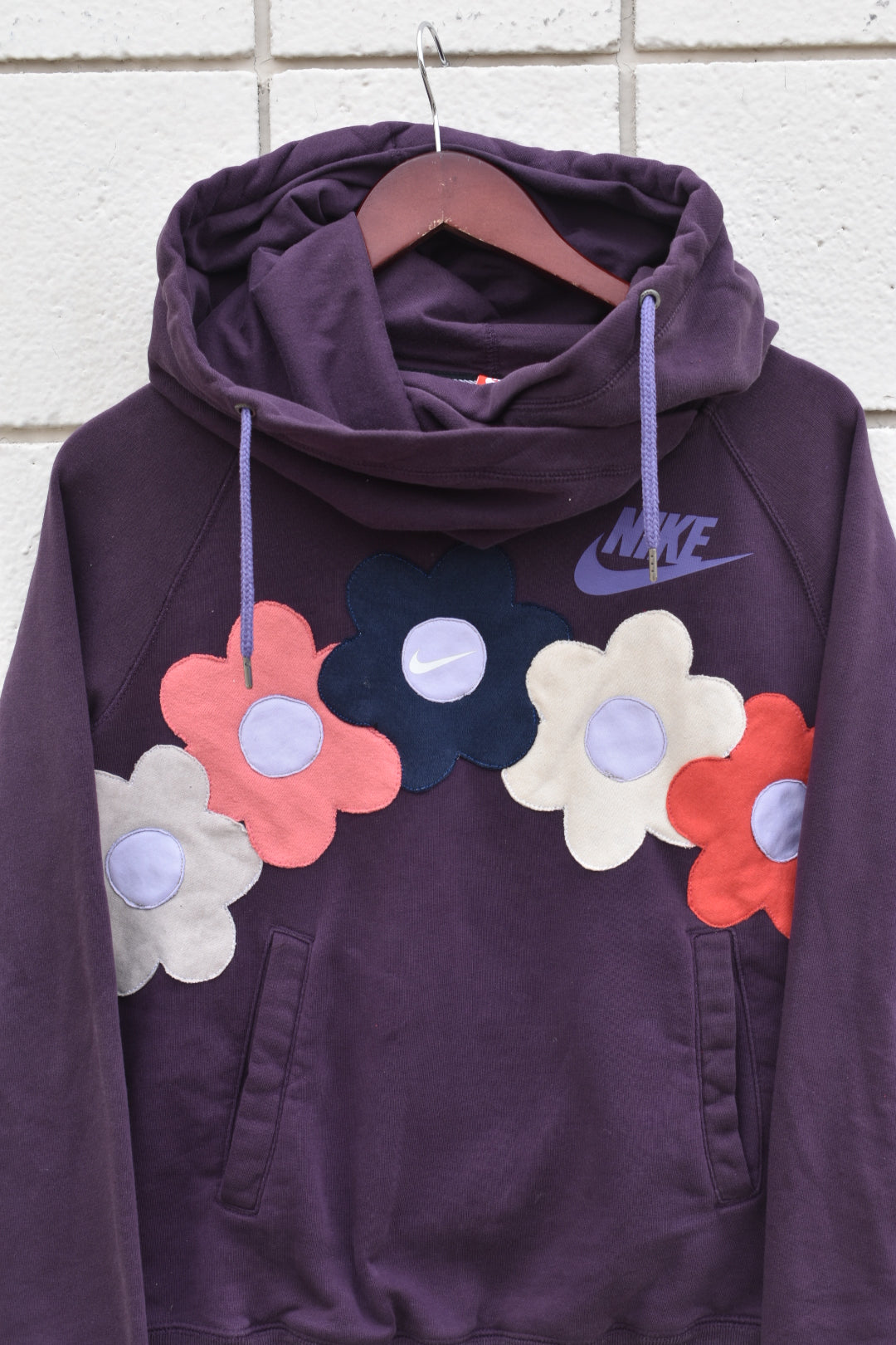 Dark Purple and Colorful Embroidered Flowers Reworked Hoodie