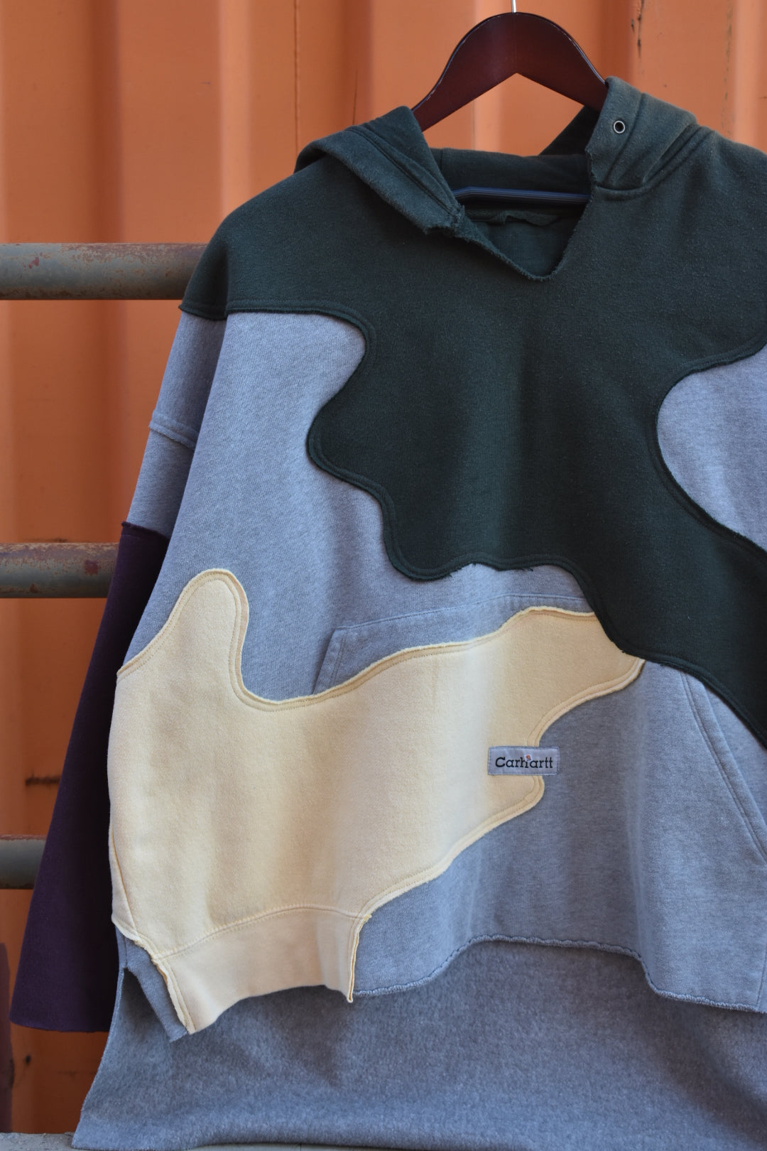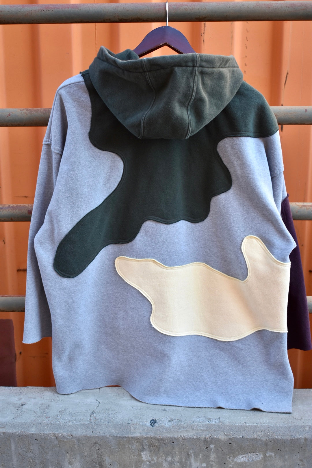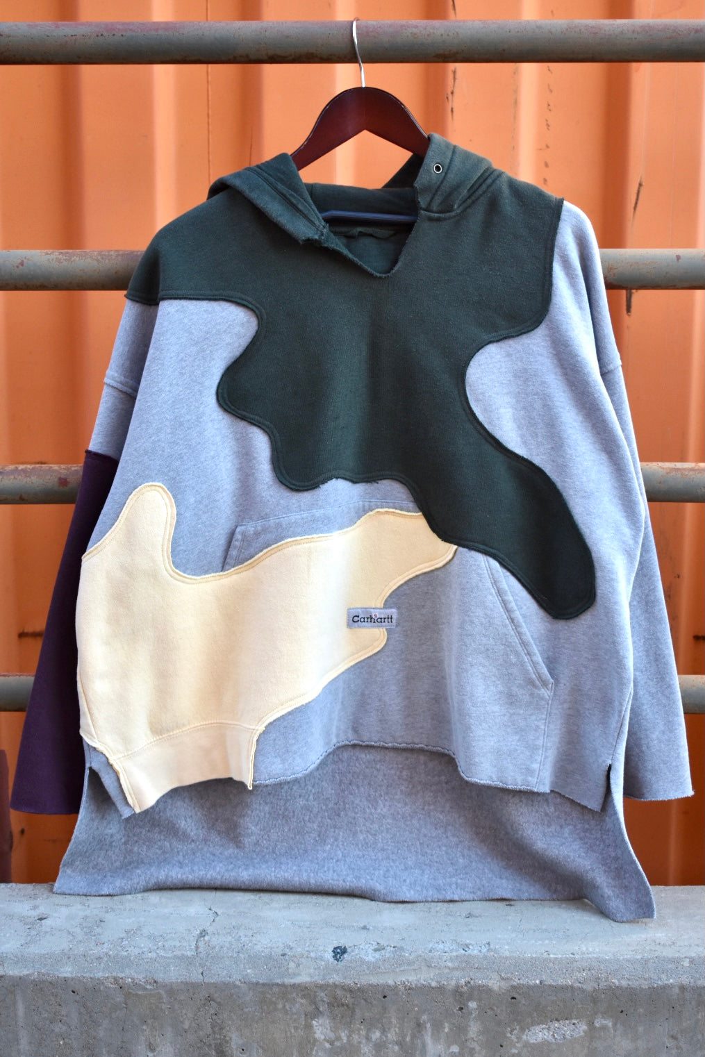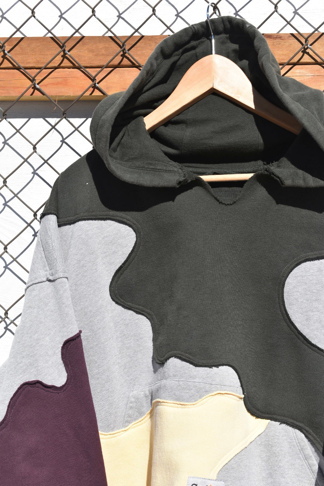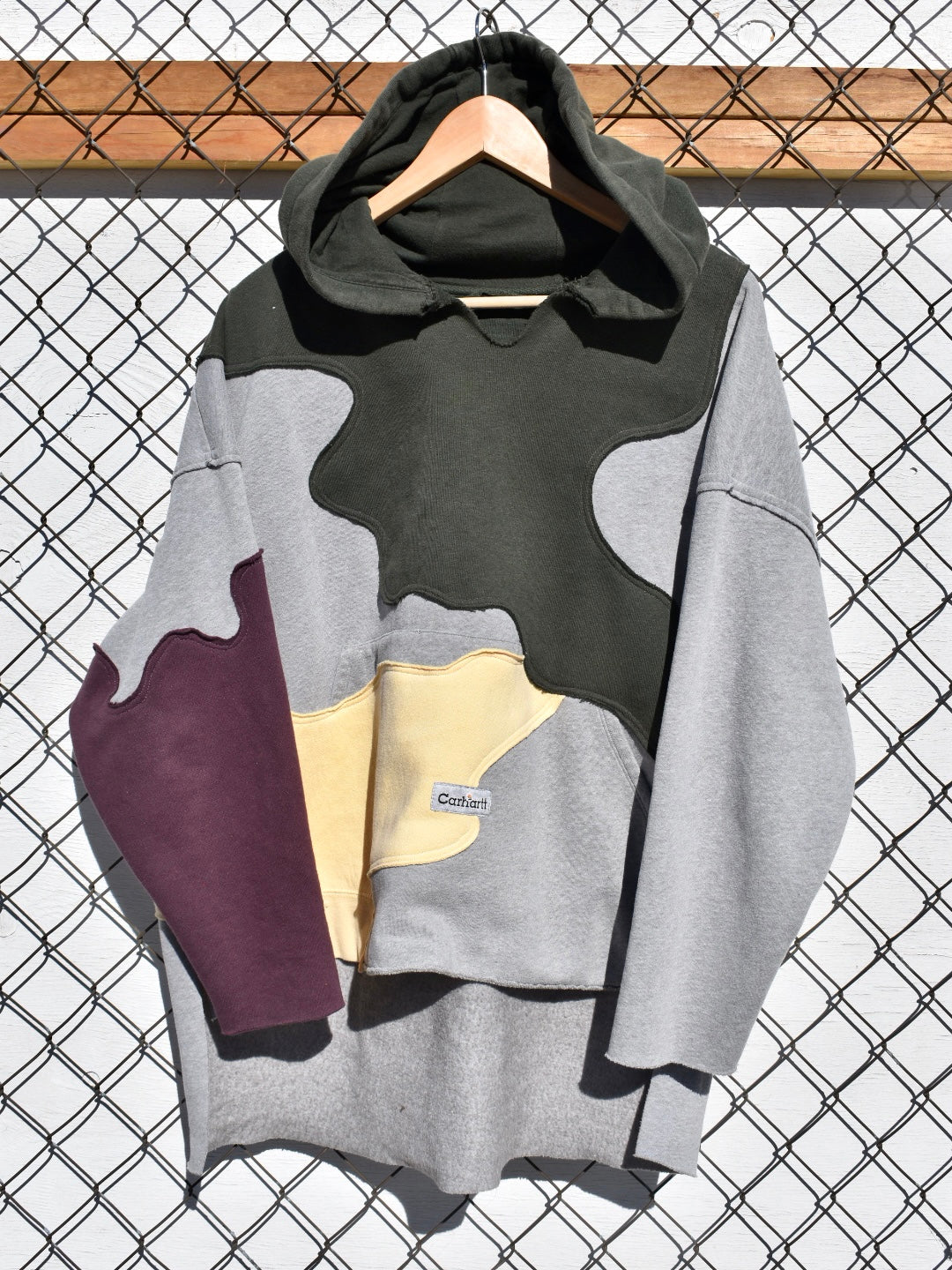 Grey, Green, Yellow and Maroon Reworked Pullover Hoodie