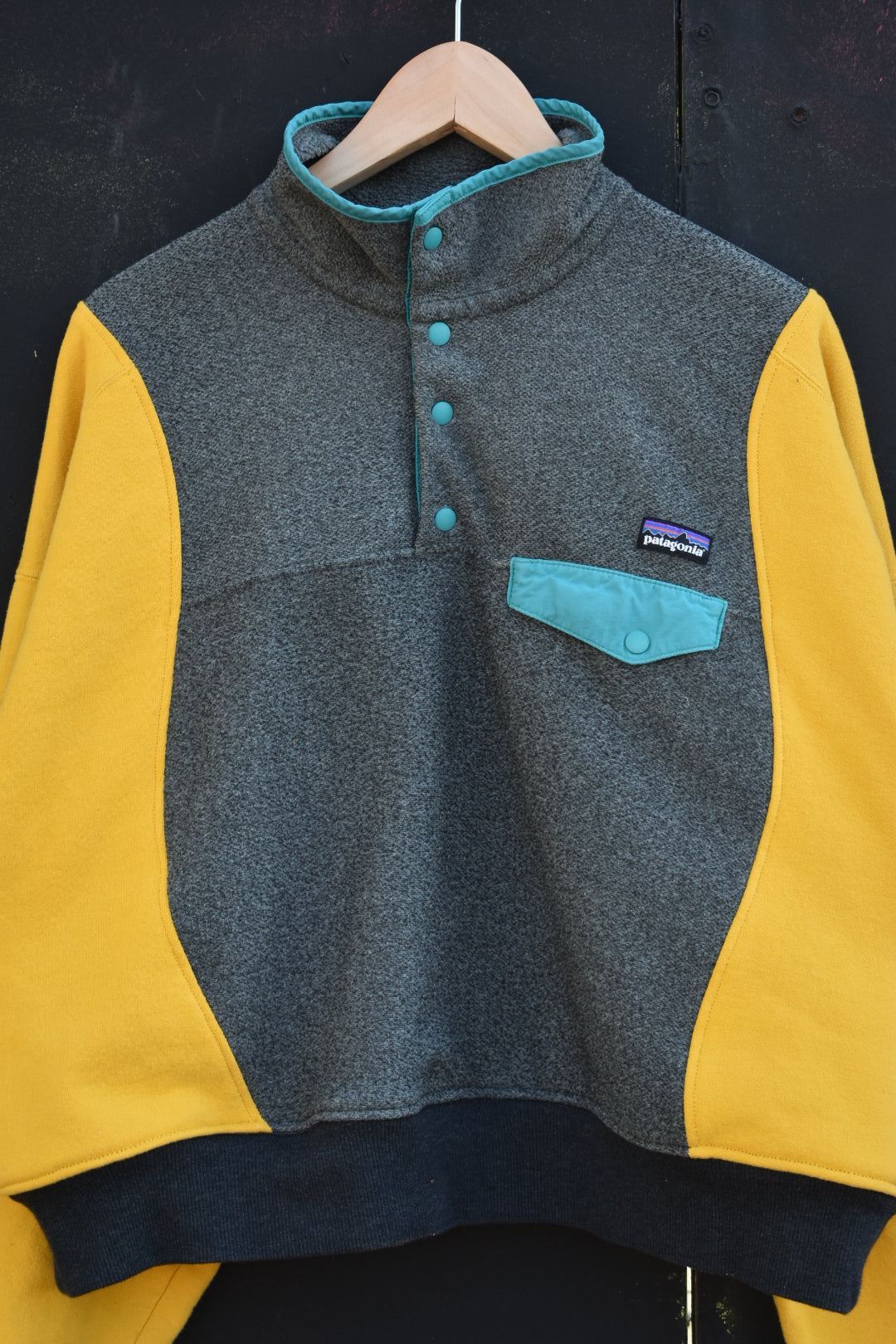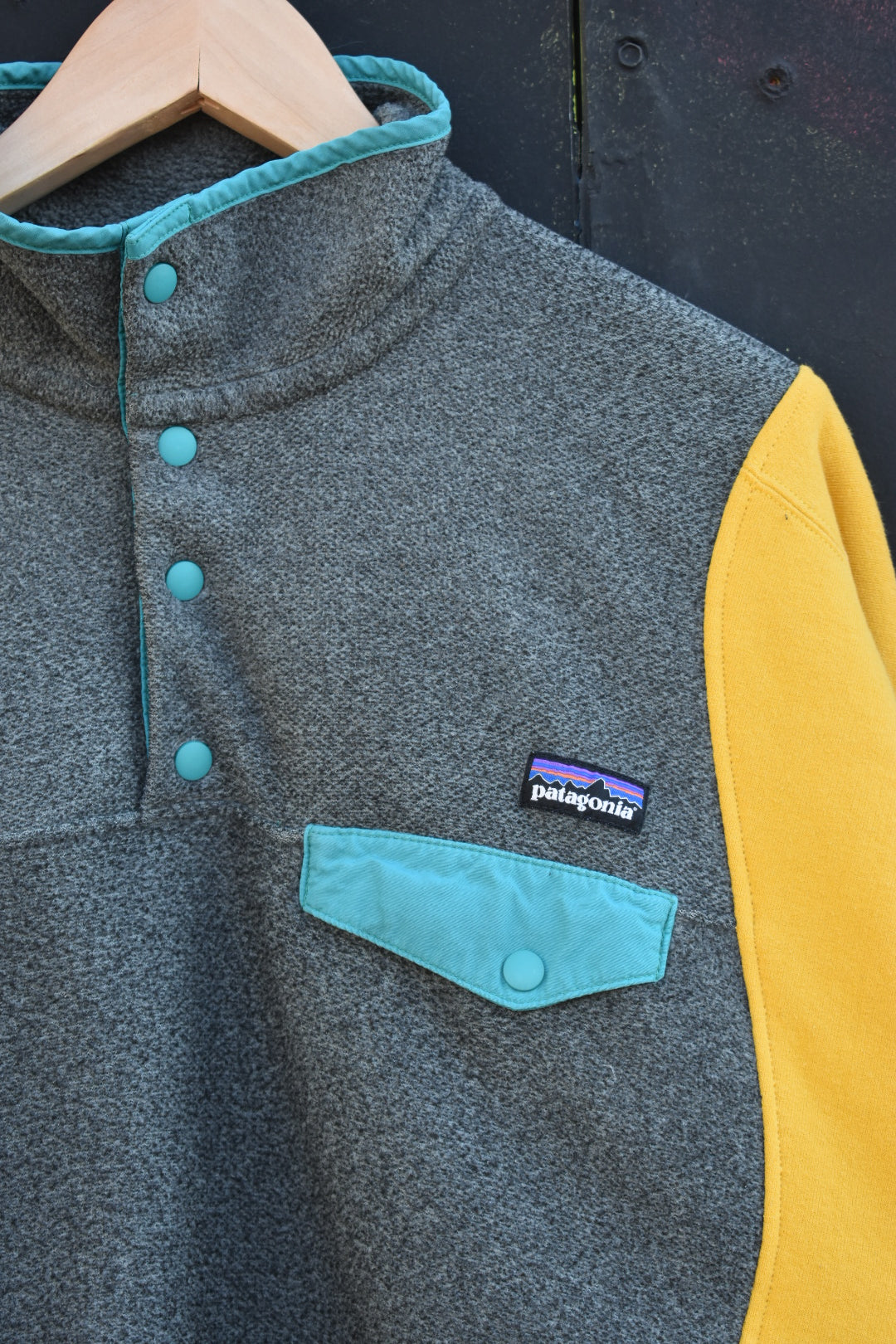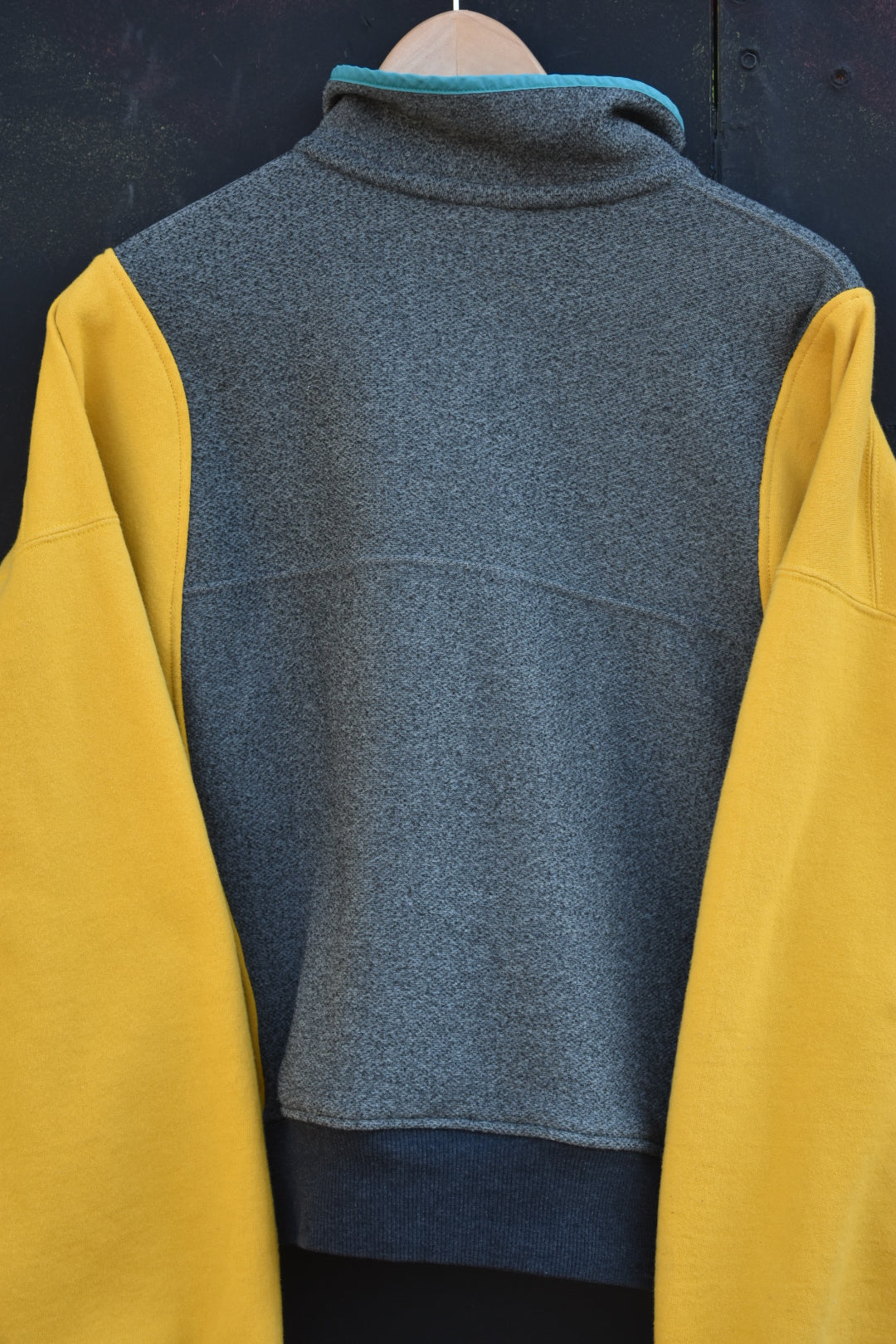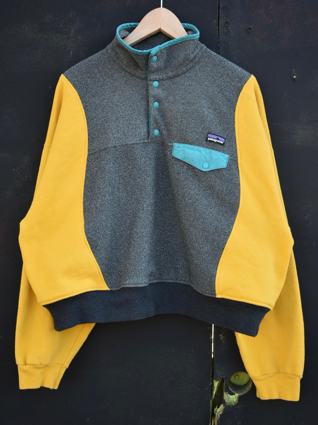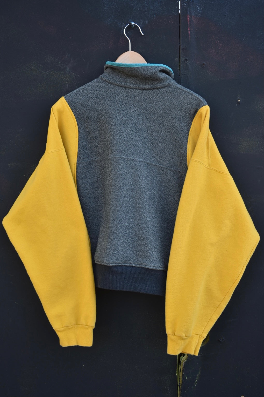 Dark Grey, Yellow and Turquoise Reworked Cropped Pullover/Fleece